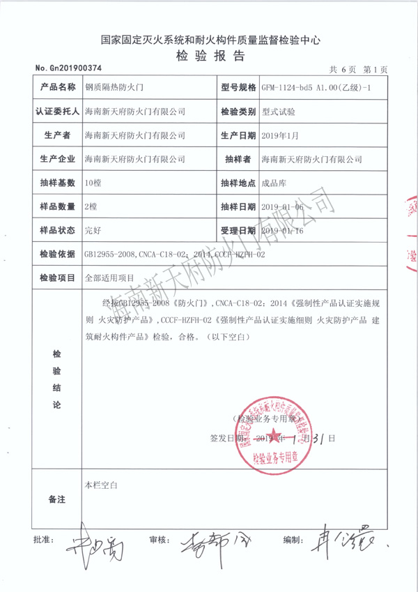 海南新天府防火門有限公司