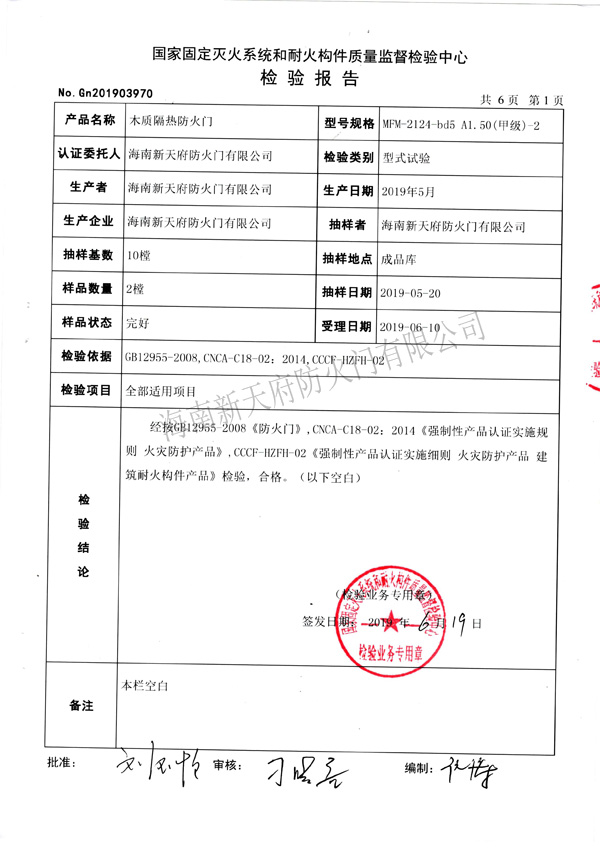 海南新天府防火門有限公司